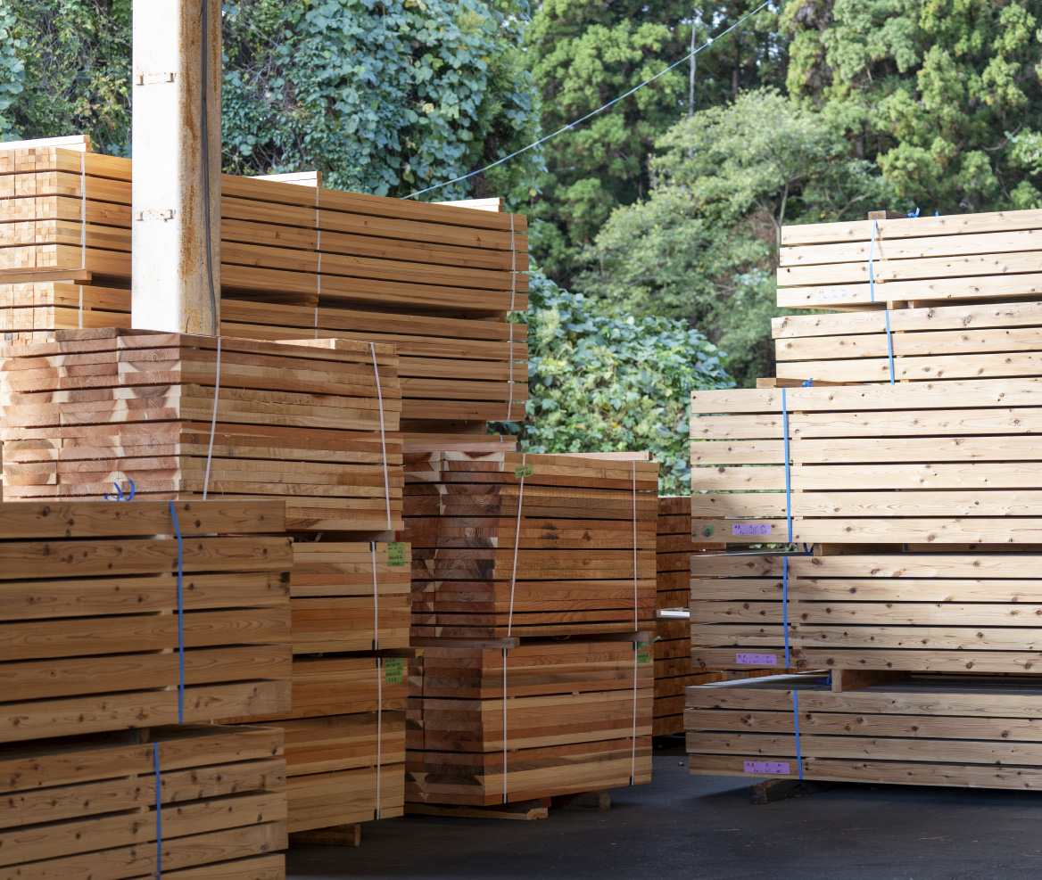 製材工場との直結と幅広いネットワークにより、高品質な木材を迅速に供給し、