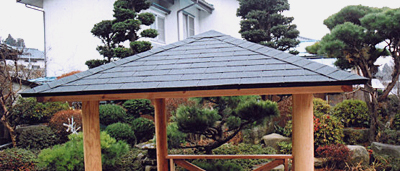 庭に、四阿を素人の日曜大工で、挑戦して見ましたが、屋根をどの様にするか迷って居る時に本田谷田部さんの、シングル材に出会いました。